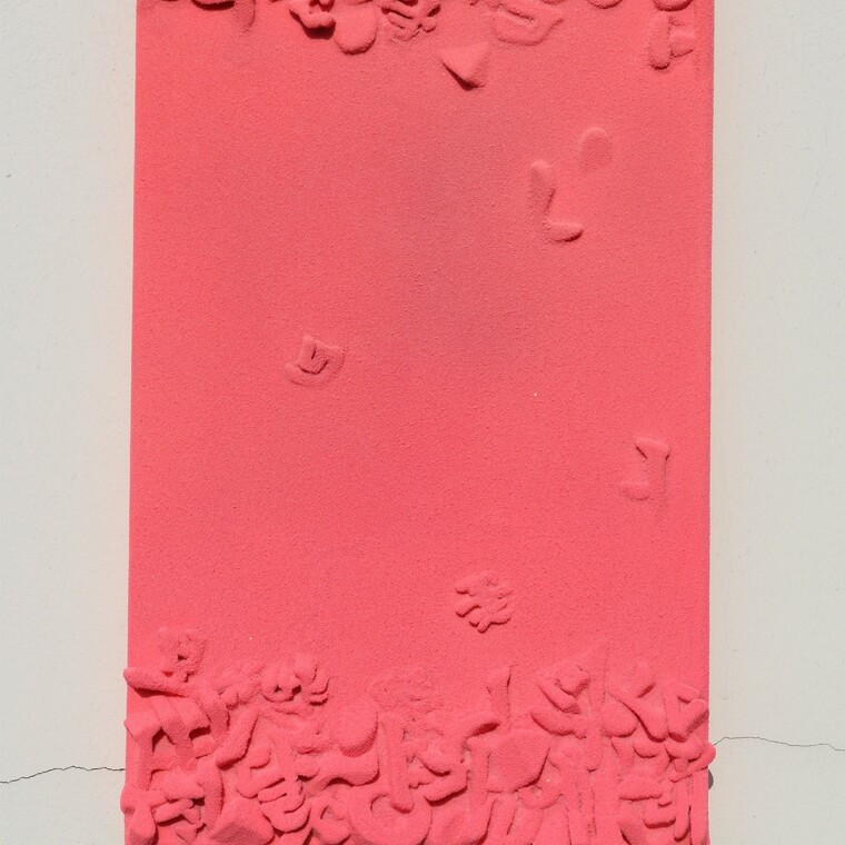 • [작가노트] 손 일 의 "Love Letter" 나의 작품들은 소통에 대한 작가의 사유를 시각화 한다. 사회에서 통용되는 언어를 매체로 소통의 화두를 끊임없이 모색하고 실험하여, 평면조형의 새로운 비젼을 보여 주고자 한다. 간결하고 절제 되어진 색과 반복 되어진 활자, 독창적 재료로 작가의 일관되고 분명한 작품에 대한 이야기를 경험할 수 있을 것이다. 소통에 대한 역사적 고찰과 함께 그 본질적인 작업을 시작하여 기호가 전달되는 인식적인 체계가 아니라 기호가 놓인 위치와 그림자, 작은 움직임에도 느낌을 표현할 수 있는 부조작업과 표면의 물성을 통해 작가만의 섬세한 감성을 전하는 작업을 하고 있다. 실이란 소재는 동양적인 의미에서 타인과의 연결성, 인연, 관계에 대한 해석이며, 입체화된 표면에 한줄 한줄 덮여진 실은 인연을 소중히 이어가는 작가의 의지적 표현이자 단순하지 않은 현대사회의 복잡한 결처럼 개체의 물성이 화폭을 형성한다. [평론] <물성과 행위를 통한 사유> 현대미술에 있어 물성과 행위는 작가의 조형어휘를 확장하는 수단으로 작용한다. 3차원의 환영을 평면으로 표현하는 단순한 방식은 페인팅 기법에 의지해 온 회화에서 그 한계성을 보였고, 새로운 표현에 대한 변화를 요구했다. 이에 부응하듯 평면성의 본질에서 벗어나지 못한 회화는 아방가르드라는 새로운 미술사조의 탄생으로 현대미술에 진입하면서 표현 방식을 확장해왔다. 특히 아방가르드는 물성에 대한 인식 전환에 큰 영향을 끼침으로써 미술 장르의 벽을 허무는 계기가 되었다. 역으로, 입체적인 오브제를 평면화시키는 작업 또한 현대미술 기법의확장성을 보여주는 한 단면이다. 현대미술은 조형적 관점에서 오브제의 물성이 가지고 있는 가능성을 발견하고 조형 언어의 수단이자 사유의 확장을위한 새로운 기법으로 보편적 개념으로 활용하고 있다. 반복되는 행위를 통해 나타나는 오브제의 조형적 구조는 단순한 형태 또는 색에 대한 시각적 판단만으로 접근하지 않는다. 행위는 작가의 작업으로 인식되고 정체성을 부여하는 무형의 조형언어로 등장한다. 프랑스의 미술사학자 앙리 포시옹(Henri Focilon)은 그가 쓴 책에서 물질의 조형적 성질에 대해 다음과 같이 이야기하고 있는데 물성에 대한 개념의 중요성을 일축한다고 볼 수 있다. “물질은 형태이다. 그리고 그 점을 통해 물질은 미술에서 형태들의 생을 불러내 발전시킨다. 그리하여 물질의 형태는 또 다른 형태를 낳고 암시하고 증식시킨다. 미술의 형태에 그토록 까다롭게 구는 이 물질은 미술의 형태에 일종의 매력으로 작용하고, 역으로 물질은 미술의 형태에 의해 심도있게 변모하기 때문이다.”<재인용> 손일이 사용하는 주요 재료에서 볼 수 있는 물성은 한지의 원료인 닥섬유와 최근의 작업에 도입하게 된 폴리재질의 민세사에 의해 크게 두 가지 성향으로 나타난다. 재료의 물성과 반복적 집적accumulation 행위가 발현되는 탐색을 이어가고 있다. 이 두 가지 중 어느 재료를 사용하든 동일하거나 획일적인 반복 행위가 아닌 2차원적 여백 혹은 3차원적 공간을 재현하는 독창적인 작업이어 나가고 있어 그 의미를 평가할 수 있다. 이러한 경향은 다분히 한국의 미적 철학을 반영하는 작업으로도 해석할 수 있다. 한글의 초판의 자모를 이용한 활자, 작업의 주된 재료로 사용되는 한지의 원료인 닥섬유 그리고 실, 화면에서 나타내는 여백 등은 동양적이고 한국적인 의식을 현대적인 감각으로 완성된 작품임을 여실히 보여준다. 특히 작가가 주요 소재로 사용하고 있는 한글 자모는 현재의 작업을 태동하게 한 근원이다. 목판에서 생겨난 한글 초판 훈민정음의 인쇄본에서 도입한 한글의 형상은 실 또는 닥섬유를 이용한 작가의 반복과 차이의 행위를 통해 훈민정음과는 또 다른 메시지를 전달한다. 닥섬유를 이용한 작업의 반복적 행위는 입체화된 한글 자모 위에 겹겹이 쌓는 행위로 완성되지만 전체를 가득 채워 밀봉하지 않는다. 닥섬유의 결과 결 사이에 틈들은 그 아래에 오랜 시간 침전되어 있는 듯한 자모들이 외부 공기 또는 공간과의 통풍 작용으로 마치 세상과 소통할 수 있어 생명을 유지할 수 있다. 한국의 전통 한지가 가지고 있는 특성을 살린 독자적인 조형언어를 발현하고 있다. 손일의 작업에서 주된 재료인 닥섬유는 민세사라는 새로운 재료를 이용해 최근의 작업으로 이어진다. 행위의 집요함은 실을 집적하는 과정에서 더욱더 끈질기게 반영된다. 반복의 행위는 입체화된 한글초성의 단순한 구조 위에 차이를 지닌 공간으로 표현된다. 작품에서 나타나는 여백 혹은 공간의 여유로운 은유법은 실을 사용한 작업에서도 변함없이 나타나고 있다. 물성과 행위는 집적되고 합쳐지는단순함이 아닌 공간 또는 여백으로써 시각적 정신적 의미를 내포하고 있다. 기존의 닥섬유와 달리 실이라는 물성의 차이에서 나타나는 변화된 작품의 성향은 매력적인 컬러감이다. 닥섬유의 물성을 이용해 단색의 단조로움의 미감을 이어왔다면 실을 이용한 작품은 다양한 색과 글라데이션으로 변모하였다. 물성과 행위의 반복을 기저로 스펙트럼과 같은 다양성