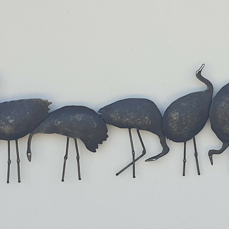 • [작가노트] 철로 만든 새들의 이야기 우리는 철의 차갑고 딱딱한 울타리 속 구조물에서 생활하며 살아간다 하여도 과언이 아니다. 이번 작업은 자유롭게 비행하며 날갯짓 하는 새들의 표현들을 우리가 살아가는 삶에 이야기들로 비유한 작품이다. 철의 선(線)속에서 조형적인 면(面)을 찾아가고 그 속에 생명의 점(點)을 찍어 형(形)상을 만들어가는 작업과정에서 즉흥적, 우연적으로 만난 철의 변화들을 딱딱한 구조물과 장식이 아닌 미술의 언어로 재해석하고 조형예술로 표출해 내는 작품들이다. 아마도 우리들 마음속 한 구석에는 철의 울타리를 벗어나 새들처럼 자유롭게 허공을 날고 싶은 욕망이 남아있을 것이다.