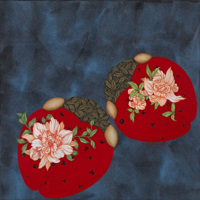 한지에 천연석채, 분채 45.5×45.5cm 2021