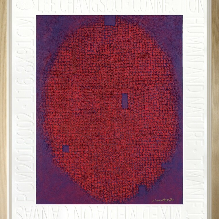 • [작가노트] 관계 인간은 자연과의 어우러짐 속에서 그 근원을 점과 선을 통해 찾을 수 있으니... 끊임없이 이어지는 삶의 카테고리 속에서 반복의 질서를 통해 우주의 근본을 찾을 수 있을 것이다. 생명의 탄생과 반복적 경험을 점과 선을 통해 이야기하고자 한다. 끊임없이 이어지는 삶의 반복적 질서를 몸소 재현하듯 펼쳐진 펄프 위에 반복적 행위 속에서 드러나는 점 또는 선의 요철을 통해 자연과 호흡하고자 했으며, 그 공기는 리듬을 타고 이어진다. 주재료인 한지는 재료라는 개념과 작품의 개념이 분리되는 것이 아니라 그 자체로 작품이 되는데, 이는 곧 ‘바탕재료’적인 측면과 그 자체가 작품화 되는 ‘오브제’적인 두 가지 측면을 동시에 지니고 있다. 이러한 한지의 물성은 곧 작품 본연의 존재방식이라는 메시지가 되어 작품의 독자적인 매체로 작용하게 된다. 평면에서의 파장의 원을 입체적으로 표현함으로써 내면과 외면의 동일성을 보여줌과 동시에 음과 양의 조화를 꾀하고자 하였다.
