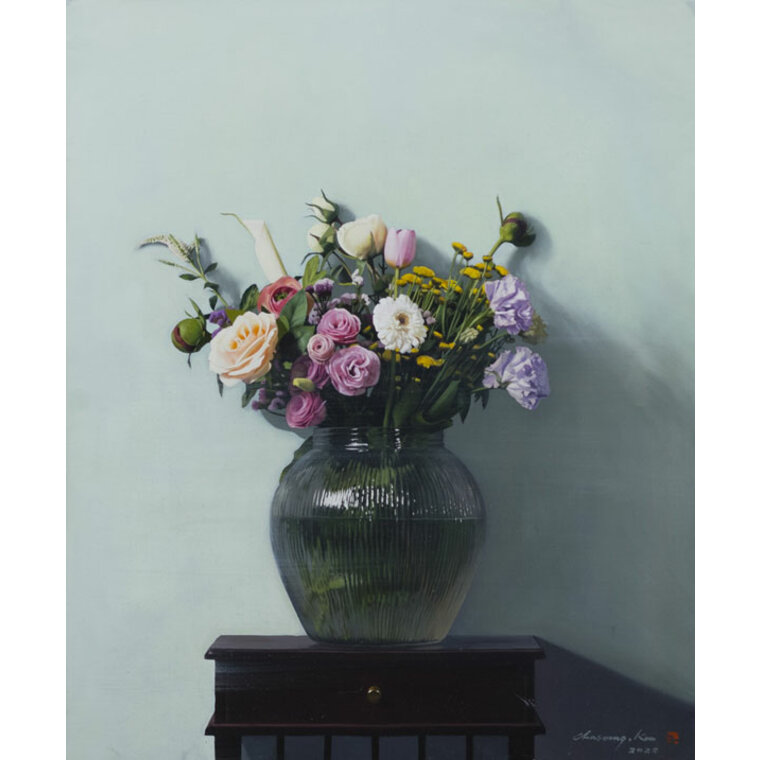 • [작가노트] 그림을 그리는 작업은 새로운 꿈을 꾸는 것이다. 거기 그 사물(being)이 그 적절한 자리에서 하나의 필수 불가결한 아름다운 대상이 되는 것, 그 대상들 하나하나가 나의 분신이 되고, 내 잃어버린 꿈의 파편이 된다. 떠도는 일상의 사물들이 새로운 이름을 주고, 더 아름답게 자리매김할 수 있도록 해 주고 싶다. 그들 각자는 이미 생명을 상실했지만, 하나의 그림이라는 공간에 놓여 짐으로 의미있는 시적 오브제의 재 탄생을 본다. 숨을 쉬는 그림, 그 대상들이 주는 더 미세한 호흡을 찾고 싶다. 마치 그려놓은 대상이 무생물체가 아닌, 무수한 꿈의 파편들이 부서져 그 잔해의 흔적을 극복하고 온전한 오브제가 되기까지 말이다. 상처 투성이의 아픈 심장을 가진 정물들을 나는 나의 그림 속에서 치유한다. 가장 께끗하고 온전한 것으로 표현되어 새로운 힘을 잉태하고 다시 하나의 커다란 힘에 응집되는 새로운 조화와 질서 위에 놓여지길 원한다. 나 스스로도 개입하길 원치않는 단지 거기 그 자리에 그들을 높여주는 일을 할 뿐이다. 그래서 굳이 내가 그들을 통해 무언가 말하려 하지 않아도 된다. 이 리얼리티의 벼랑 끝에서 그것들은 이미 현실의 being 이 아닌 것이다.제 2의 being 이 작품속에서 잉태하는 것이다. 작가 자신은 이제 붓을 내려놓는 이방인일 뿐이다. 작품이 자신들의 자리매김과 저마다의 색깔로 빛을 발할 때 쯤이면 나는 가끔 호흡을 멈춘다. 그들이 호흡하기 때문이다. 하나의 힘 안에 응집된 그들만의 질서, 거기 그 자리에 있어 흔들리지 않는 조화의 아름다움, 사물들 각자가 자존심을 회복하고, 어느날 아침 내가 눈을 떳을 때 그 미지의 공간에 그것들이 사라져 버릴 것 같은 두려움 때문이기도 하다. 새로운 자아의 탄생, 허물을 벗는 새로운 잉태, 벌거벗은 나신의 미지의 순수한 유혹, 그 낯선 시선 속에서 우리를 자각케 하고 체험케 한다. 혹 지나치기 쉬운 사실 안에서 가장 바른 사실의 긍정, 결코 억압하지 않고 자유로울 수 있는 자기 망각의 공간, 결코 세상에 존재하지 않는 참 긍정의 꿈의 영역,이것이 내가 표현하고자 하는 “사실”의 세계이다.