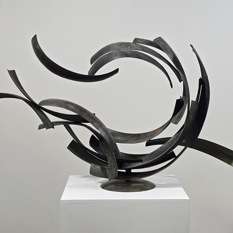 • [작가노트] 생명의 노래와 춤 나의 작업은 자연과 생명, 그리고 그 안에 흐르는 보이지 않는 기운에 대한 사유에서 출발한다. 금속이라는 물질은 본래 무겁고 단단하지만, 나는 그 물성 속에서 율동과 생명성을 끌어내고자 한다. 이는 자연이 지닌 끊임없는 움직임과 생명의 리듬을 형상으로 드러내기 위한 시도이다. 작품에는 우리 전통 문양과 건축, 공예, 벽화 등에 스며 있는 영적 기운이 바탕으로 깔려 있다. 나는 이를 춤에 비유한다. 춤은 형태이면서 동시에 흐름이며, 정지된 순간 속에서도 시간과 에너지를 품고 있다. 금속 조형 역시 그러한 움직임의 기억을 담아내는 매개체가 된다. 무리지어 수면 위를 날아오르는 새들의 모습은 일상의 감각을 깨우는 자연의 은유로 등장한다. 이는 단순한 자연 묘사가 아니라, 현대인의 감각 속에서 점차 희미해지는 생명의 떨림을 환기시키기 위한 장치이다. 작품 속 금속 조각들의 집합은 개별 존재이자 하나의 유기적 흐름을 이루며, 생명의 군무를 이루듯 공간 속에 펼쳐진다. 또한 이 작업은 현대사회에서 잃어가고 있는 원초적인 존재의 기억에 대한 질문이기도 하다. 자연의 생명력과 시간, 공간이 만나는 지점에서 우리는 무엇을 잃었고, 무엇을 되찾아야 하는가를 스스로 묻고자 한다. 사라져가는 자연과 생명의 존엄성은 작품 속에서 하나의 노래가 되어, 가식과 허위로 가득한 문명 속에서도 희망의 가능성을 조용히 들려준다. 한국 건축의 처마선은 나에게 중요한 조형적 모티프이다. 무거운 소재임에도 불구하고 하늘로 날아오르듯 자연과 어우러지는 그 선의 기운은, 생명이 지닌 근원적인 율동과 맞닿아 있다. 나는 금속을 통해 그 본질을 드러내고, 자연과 인간, 전통과 현대가 만나는 접점을 형상화하고자 한다. 이 작업들은 결국, 생명에 대한 경외와 자연과의 조화로운 공존을 향한 나의 지속적인 사유의 기록이다. 2026.2 김 준