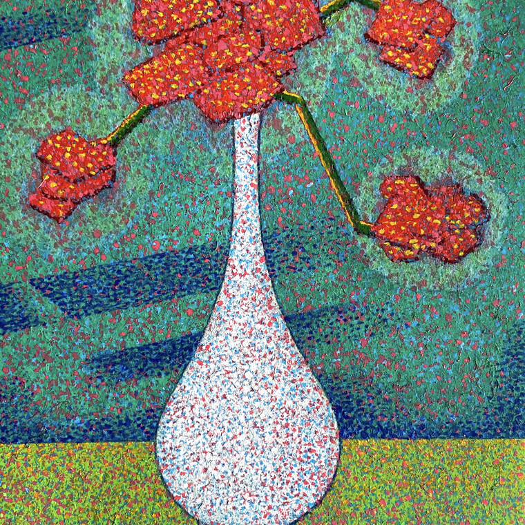 • [작가노트] 작품의 주제는 시간과 공간이다. 생각과 시간이 시각을 만들고 생각과 시간을 갖게 한다. 나는 이것을 반복하고 있다. [평론1] 사실 박강정의 그림에는 놀라운 충동이나 특이한 기법은 물론 유다른 삶의 의식도 보이질 않는다. 그러나 얼핏보면 쉽게 다가올 듯한 유혹적인 그림이지만 따지고 보면 아무렇게나 함부로 접근하기 어려운 어딘가 외롭기까지한 귀태가 엿보이는 것이 그의 그림이다. 그의 그림에 엿보이는 귀태란 어쩐지 베틀을 짜듯 차근차근 하나의 형태를 신중하게 일구어나가는 일종의 구도자적인 작업과정에서 오는 - 그 누구도 침범하기 어려운 엄숙하리만큼 분명한 자기의 절제 의식이라 달리 말할 수 있으리라. 대학을 졸업하고 20여년이 지난 오늘날까지 칩거한 채 오직 그림만을 그렸지만 그의 그림을 본 사람은 거의 없다. 여기에는 항시 과묵하기만해서 드러내길 싫어하는 비사교적인 그의 성격탓도 있겠지만 그만큼 그는 자기가 사는 재미의 한계를 일찍부터 그림 그리는 일에만 한정해버린- 그래서 작은 재미를 큰 재미로 만들 줄 아는 알고 보면 무서울 정도로 치밀한 계산을 할 줄 아는 슬기로움을 갖고 있다. 평범한 비례, 대칭적인 균형, 단순한 재미- 이러한 나름대로의 규범 속에서 미미한 선의 긁적거림이나 색점조차 하나의 흐트러짐이 없이 면밀하게 전체적인 조화속에 침묵으로 수렴하는 그의 그림은 절제된 형식을 통해서 더도 아닌 덜도 아닌 나름대로의 길을 찾으려는 겸손하리만큼 성실한 외톨박이의 이름표 이외는 다른 것이 없다. 고향인 마산에 은거하면서 그려둔 많은 그림 중에서 그 일부만이라도 전시하기로 한 그의 결단을 축하하면서 그와 그의 작품에 대한 보다 세심한 관심의 글은 다음의 전시회에 미루기로 한다. 미술평론가 • 부산대 교수 金 海 成 [평론2] 침묵이 잠재된 잔잔한 풍경의 환영 그림을 볼 때 하나의 그림으로 보기보다 그림 속에 무엇이 그려져 있는 가를 먼저 보려는 오래된 우리들의 버릇이 있는가 하면, 한편으로는 어쨌든 그림은 보기에 우선 좋아야 한다는 불문률처럼 오래된 우리들 관념의 전제가 있다. 전자의 버릇에 집착하다보면 사진처럼 그린 사실적인 그림의 취향만 고집하게 되고, 후자의 전제에 사로잡히다보면 꽃과같이 아름다우면 그만이라는 장식적 유미주의에 빠지게 된다. 그런가하면 그림이란 전자도 후자도 아닌 마치 글처럼 자신의 느낌이나 생각을 나타내면 그만이라는 견해도 있다. 우리들이 모르는 그림이라 하여 그림을 자주 외면하게 되는 것은 이들 중 어느 한편이 자신에게 만족되지 못할 때가 아닌가 여겨진다. 첫번째 개인전에 보인 박강정의 그림은 그 어느 쪽도 외면하기 어려운 누구에게나 직접적으로 쉽게 다가올 것 같은-그래서 누구나 걸어두고 싶은 유혹을 느낄 수 있는 그림임에는 틀림이 없다. 평면으로 구성된 단순한 형태가 풍경적 대상을 보다 쉽게 암시하고 있고 망판처럼 다져진 색점들의 조화가 아름다울 뿐만아니라 이러한 형태와 색점들이 일구어내는 패턴화된 중복된 이미지가 얼핏보면 화사한 듯하면서도 우리가 마주하는 현실적 풍경과는 거리가 다른 약간은 환상적이고 잔잔하면서도 우울한 환영을 불러 일으킨다. 지나치게 개인적인 감정이나 경험을 격화시키거나 과시하려는 삶의 짓거리에 보다 강한 의식을 포장하려드는 현대미술의 단편적인 입장에서 보면, 완벽을 다짐하듯 침묵하는 형식속에 일관된 지향성을 보이는 박강정의 이러한 그림은 평이한 소재를 통해 유미적인 형식만을 고집하고 있다고도 볼 수 있으리라.