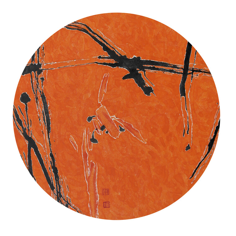 한지에 수묵, 안료 지름30cm 2022