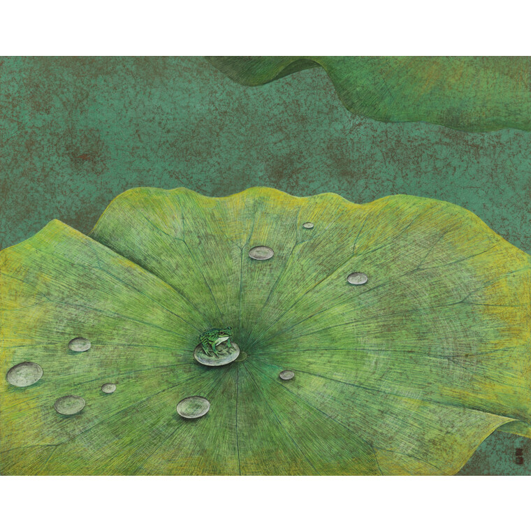 • [작가노트] 작업에 대하여 백색의 순지 위에 펼쳐지는 색감은 나에게 드넓은 자연의 공간이 된다. 그리고 그 위에서 펼쳐지는 다양한 색채들의 만남은 내가 살면서 느끼는 마음의 표현이 된다. 일상의 경험과 추억들은 여러 가지 색을 이용해 붓질로 화면에 펼쳐지고, 건조된 종이를 조심스럽게 구기며 균열 된 틈을 통해 드러나는 이전의 색들은 과거를 회상케 한다. 이 위로 등장하는 연과 개구리, 목련꽃들은 내가 담고 싶은 자연의 일부들이다. 나 또한 자연의 일부인 것이다. 이렇게 나는 자연의 위대함에 감사함을 느끼며 그 자연의 일부분들을 하나하나씩 꺼내어 나의 화면공간에 기록해 나가고자 한다. 누구에게나 품고 있는 소중한 기억들이 있다. 나에게 있어 소중한 기억은 엄마가 되면서 내 옆에 딱 붙어버린 청개구리 같은 아들과 하루하루 복닥거리면서 만들어 내는 추억들이 화면에서 펼쳐진다. 드넓은 연잎 위, 나무 위에서 먼곳으로의 도약을 꿈꾸는 개구리의 모습은 엄마와 아들의 모습과도 같다. 아이의 안전을 바라며 엄마의 넓은 뜰에서 즐겁게 뛰놀고, 아이는 아무런 걱정 없이 이곳저곳을 마음 놓고 뛰어놀 수 있는 행복과 감사의 존재이다.