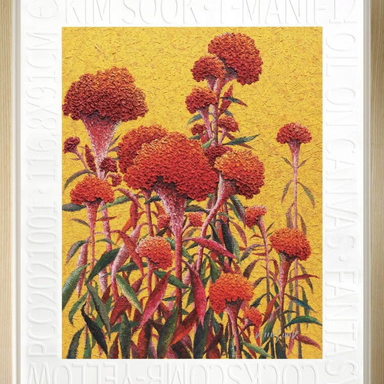 • [작가노트] 맨드라미-나의 삶을 담아 내는 그릇 나만의 표현으로 생명력을 부여해 창조하고 이야기를 쏟아 내려 한다. 나는 꽃을 바라보노라면 시름을 잊는다. 특히나 가공되지 않은 자연의 선물, 들꽃들은 내 영혼을 우주에 뿌리는 듯 자유로움으로 부서트린다. 그리고 내가 그들이 되어 보이는 듯 보이지 않는 듯 거기에 머무른다. 캔버스는 이런 나를 어느덧 훌쩍 옮겨 놓는 장소이다. 마음속에서 정제된 색채를 다루며 마음의 시름을 얹어 놓은 아름다운 형형의 모양새에서 존재의 의미와 위안을 받는다. 여러 들꽃 중에서도 유난히 기억을 잡는 것은 맨드라미 꽃이다. 맨드라미는 모양새만큼이나 꿈틀대며 나의 뇌관을 파고든다. 최근 수년간 작업의 소재로 택한 맨드라미는 그 삶을 담아내는 그릇이다. 그리고 그것들은 내 마음의 표현이다. 너무 소박해 그다지 아름답지도 않지만, 순수가 폭발하여 요염하기까지 한 모습으로의 변화는 볼수록 아름답다. 붉고 여리 여리한 모습에서 뜨거운 한여름을 질주하며 겨울이 되기까지 점차로 누구보다도 굳건하고 강인한 자태로의 변화는 인간의 생과 사를 생각하게 한다. 코트 깃을 여미며 바라보는 빛바랜 맨드라미의 자태는 삶의 절규였다. 서리가 내려앉는 대지의 차가움을 향해 저항하는 그 모습은 처절하게 사랑스럽다. 도도함, 강인함, 꿈틀대는 생의 욕망을 모두 가진 생명체의 이야기를 갖는다. 그래서 나는 그가 되고, 나만의 표현으로 생명력을 부여해 창조하고 이야기를 쏟아 내려 한다. 아~강한 것은 아름답다! 내 안에 뿌리내리는 끝없는 외침이다. 작업에 있어 색과 형상의 생명력을 표현코자 유화물감을 마치 부조 작업 하듯 두껍게 붓질을 반복해 마띠에르를 주었고, 그럼에도 터치를 섬세하게 하여 꽃의 아름다움을 극대화하고 삶의 이야기를 수놓는다. 서양화를 그리고 있지만 현대적이며 한국적 정서를 표현하려고 배경 작업에도 많은 의미를 담았다. 금분이나 숯가루 등은 재료 선택도 그렇고 표현 방식에서도 우리의 한지의 느낌을 살리고자 여러 색의 반복된 채색으로 투명도와 은은함 그리고 질감의 거치름을 추구하였다. 소재를 맨드라미로 단일화하여 작업을 하며 자칫 지루할 수 있는 작업 방향을 색상과 드로잉 방법의 변화로 새로움을 모색해 본다. 실제의 세계와 환영의 세계를 연결해 보려고 한다. 이어지는 작업 방향은 지금까지도 그랬듯이 자연을 그리되 평상의 자연이 아닌 오래도록 고민하고 달여서 우려져 깊게 고찰된 심상의 세계를 그리는 것이다. 그 끝에 존재하는 점이 무엇이든 그것은 나여야 하고, 그리고 맨드라미는 그 세계를 드나드는 출구로 나와 언제나 함께 발걸음을 나선다.
