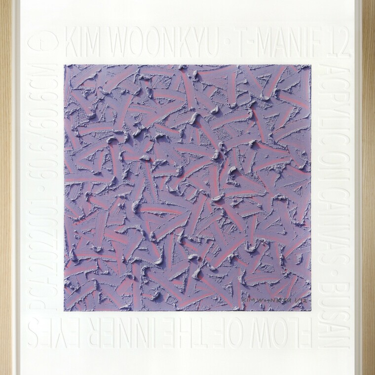 • [평론] 획(劃)과 색(色) Strokes & Colors <심안의 흐름> 작업은 획(劃)의 회화적 가능성을 전통과 현대를 아우르는 다양한 조형적 실험을 통해 보여준다. 요약하자면, 선에서 출발하여 오브제를 통해 조형성이 강화되고 다시 평면회화로 돌아간다. 우연성에서 비롯되는 생동적이고 자연스러운 획의 힘 그리고 오브제에서 강화된 촉각성이 총체적으로 반영된 <심안의 흐름> 평면회화에서는 전통적인 수묵과 채색에서 받은 영감을 현대적인 예술적 감수성에 상응하는 형식으로 재현하고 있다. 거친 천에 돌 알갱이를 넣은 물감을 붓이 아니라 나이프를 사용해서 그려진 화면은 얼핏 전형적인 모노크룸 회화처럼 보인다. 그러나 여러 측면에서 볼 때 모노크룸 회화나 단색화에서 환기되는 조형성과는 상당할 정도로 그 결을 달리하는 평면회화이다. 김운규는 색의 방법론을 차용하는 차원에서 벗어나 획의 미학의 맥락에서 자신의 고유한 조형언어를 표명하려고 시도한다. 또한 이 평면회화는 김운규 작가가 태어나고 성장한 부산의 자연과 환경이 어떻게그의 예술 세계에 강한 영향을 미쳤는지를 탐구하고 있다. 작가는 부산의 바다, 산, 바람, 빛 그리고 도시의 리듬이 어떻게 작업으로 녹아들었는지를 이야기한다. 획과 색채는 부산의 파도처럼 역동적이며, 현대적 감각을 더해 작가의 시선으로 재해석되었다. 이 과정에서 작가는 아크릴 물감에 모래와 흙, 작업실에서 직접 소비한 커피 분쇄 잔여물까지 혼합하여 작가의 세상에서 펼쳐지는 새로운 시각의 텍스처를 만들어냈다.