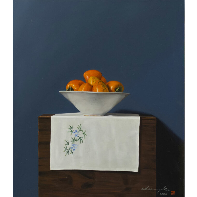 • [작가노트] 그림을 그리는 작업은 새로운 꿈을 꾸는 것이다. 거기 그 사물(being)이 그 적절한 자리에서 하나의 필수 불가결한 아름다운 대상이 되는 것, 그 대상들 하나하나가 나의 분신이 되고, 내 잃어버린 꿈의 파편이 된다. 떠도는 일상의 사물들이 새로운 이름을 주고, 더 아름답게 자리매김할 수 있도록 해 주고 싶다. 그들 각자는 이미 생명을 상실했지만, 하나의 그림이라는 공간에 놓여 짐으로 의미있는 시적 오브제의 재 탄생을 본다. 숨을 쉬는 그림, 그 대상들이 주는 더 미세한 호흡을 찾고 싶다. 마치 그려놓은 대상이 무생물체가 아닌, 무수한 꿈의 파편들이 부서져 그 잔해의 흔적을 극복하고 온전한 오브제가 되기까지 말이다. 상처 투성이의 아픈 심장을 가진 정물들을 나는 나의 그림 속에서 치유한다. 가장 께끗하고 온전한 것으로 표현되어 새로운 힘을 잉태하고 다시 하나의 커다란 힘에 응집되는 새로운 조화와 질서 위에 놓여지길 원한다. 나 스스로도 개입하길 원치않는 단지 거기 그 자리에 그들을 높여주는 일을 할 뿐이다. 그래서 굳이 내가 그들을 통해 무언가 말하려 하지 않아도 된다. 이 리얼리티의 벼랑 끝에서 그것들은 이미 현실의 being 이 아닌 것이다.제 2의 being 이 작품속에서 잉태하는 것이다. 작가 자신은 이제 붓을 내려놓는 이방인일 뿐이다. 작품이 자신들의 자리매김과 저마다의 색깔로 빛을 발할 때 쯤이면 나는 가끔 호흡을 멈춘다. 그들이 호흡하기 때문이다. 하나의 힘 안에 응집된 그들만의 질서, 거기 그 자리에 있어 흔들리지 않는 조화의 아름다움, 사물들 각자가 자존심을 회복하고, 어느날 아침 내가 눈을 떳을 때 그 미지의 공간에 그것들이 사라져 버릴 것 같은 두려움 때문이기도 하다. 새로운 자아의 탄생, 허물을 벗는 새로운 잉태, 벌거벗은 나신의 미지의 순수한 유혹, 그 낯선 시선 속에서 우리를 자각케 하고 체험케 한다. 혹 지나치기 쉬운 사실 안에서 가장 바른 사실의 긍정, 결코 억압하지 않고 자유로울 수 있는 자기 망각의 공간, 결코 세상에 존재하지 않는 참 긍정의 꿈의 영역,이것이 내가 표현하고자 하는 “사실”의 세계이다.