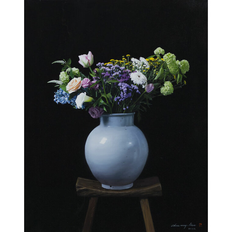 • [작가노트] 그림을 그리는 작업은 새로운 꿈을 꾸는 것이다. 거기 그 사물(being)이 그 적절한 자리에서 하나의 필수 불가결한 아름다운 대상이 되는 것, 그 대상들 하나하나가 나의 분신이 되고, 내 잃어버린 꿈의 파편이 된다. 떠도는 일상의 사물들이 새로운 이름을 주고, 더 아름답게 자리매김할 수 있도록 해 주고 싶다. 그들 각자는 이미 생명을 상실했지만, 하나의 그림이라는 공간에 놓여 짐으로 의미있는 시적 오브제의 재 탄생을 본다. 숨을 쉬는 그림, 그 대상들이 주는 더 미세한 호흡을 찾고 싶다. 마치 그려놓은 대상이 무생물체가 아닌, 무수한 꿈의 파편들이 부서져 그 잔해의 흔적을 극복하고 온전한 오브제가 되기까지 말이다. 상처 투성이의 아픈 심장을 가진 정물들을 나는 나의 그림 속에서 치유한다. 가장 께끗하고 온전한 것으로 표현되어 새로운 힘을 잉태하고 다시 하나의 커다란 힘에 응집되는 새로운 조화와 질서 위에 놓여지길 원한다. 나 스스로도 개입하길 원치않는 단지 거기 그 자리에 그들을 높여주는 일을 할 뿐이다. 그래서 굳이 내가 그들을 통해 무언가 말하려 하지 않아도 된다. 이 리얼리티의 벼랑 끝에서 그것들은 이미 현실의 being 이 아닌 것이다.제 2의 being 이 작품속에서 잉태하는 것이다. 작가 자신은 이제 붓을 내려놓는 이방인일 뿐이다. 작품이 자신들의 자리매김과 저마다의 색깔로 빛을 발할 때 쯤이면 나는 가끔 호흡을 멈춘다. 그들이 호흡하기 때문이다. 하나의 힘 안에 응집된 그들만의 질서, 거기 그 자리에 있어 흔들리지 않는 조화의 아름다움, 사물들 각자가 자존심을 회복하고, 어느날 아침 내가 눈을 떳을 때 그 미지의 공간에 그것들이 사라져 버릴 것 같은 두려움 때문이기도 하다. 새로운 자아의 탄생, 허물을 벗는 새로운 잉태, 벌거벗은 나신의 미지의 순수한 유혹, 그 낯선 시선 속에서 우리를 자각케 하고 체험케 한다. 혹 지나치기 쉬운 사실 안에서 가장 바른 사실의 긍정, 결코 억압하지 않고 자유로울 수 있는 자기 망각의 공간, 결코 세상에 존재하지 않는 참 긍정의 꿈의 영역,이것이 내가 표현하고자 하는 “사실”의 세계이다.