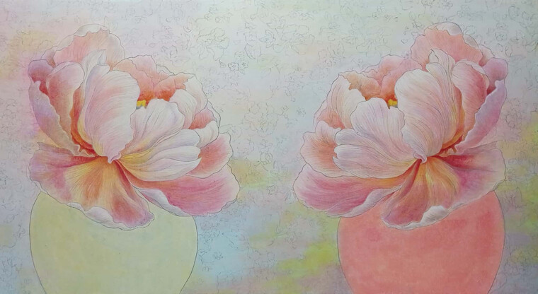 • 여인의 삶은 우주를 담고 있습니다. 예술의 원천은 작가의 경험이다. 작가가 삶에서 경험하고 느낀 것들은 작업의 방향을 정하는 지표로 작용하여, 나의 그림 또한 수많은 고뇌와 탐구 끝에 완성된 결과물이라고 볼 수 있다. 신주단지는 가정이나 신당에서 모시는 신성이 담긴 물체를 일컫는 말이다. 신주단지를 모실 때에 조금이라도 부정하거나 정성을 기울이지 않으면 집안에 탈이 난다고 한다. 더불어 집 안에 있는 신은 가신(家神)이라고 하는데 하나의 집안을 작은 우주로 보았을 때 각 가신들에게는 고유한 영역이 주어진다. 예를 들어 집 건물을 수호하는 성주신, 집터를 지키는 터주신, 잡귀를 물리치는 대문신, 부엌을 관장하는 조왕신, 우물을 지켜주는 용왕신, 화장실을 지켜주는 뒷간신까지… 각 가신들은 고유한 영역에 따라 그 맡은 역할 또한 다르다. 나는 그간 북어를 그려왔다. 신의 제물이 인간의 먹거리로 다채롭게 변용되어 밥상에 올라오는 것처럼 가신들 또한 갖가지 모습으로 인간의 곁을 지켜주었음을 느꼈고, 그 마음을 작품에 표현하고 싶었다. 많은 가신들 중 조왕신을 골랐는데 조왕신은 부엌을 지키는 신으로서 그 어떤 신보다 여성의 따듯하고 소박한 마음을 담고 있으리라 생각되었기 때문이다. 여성은 가족의 안녕과 집안의 평안함을 바라며 정성을 드리는 주체이다. 여성은 자식에게는 어머니, 남편에게는 안사람, 시부모에게는 며느리로 통하며 가정을 지탱해왔다. 이처럼 가정에서 절대적 존재인 여성의 주체성을 부엌을 지키는 수호신인 조왕신과 접목하여 풀어가보고자 한다. 여성으로 태어나 딸로서 아내로서 어머니로서 며느리로서 살아왔다. 상황에 따라 변용되는 북어의 모습이 나와 많이 닮은 것 같아 북어를 그렸고, 소망과 기다림이 있는 북어를 닮고 싶어 또 북어를 그렸다. 여성의 삶은 나의 삶이고 나의 소망이고 나의 기다림이다. 현대사회에서 여성은 객체로 존재할 때가 많지만 나의 그림에서는 여성을 주체로 하여 그녀의 마음을 거침없이 표현할 수 있게 도와주고 싶다. 아내로서 어머니로서 며느리로서 한 가정을 위해 보이지 않는 헌신으로 인내했던 그녀의 소박함이 피워내는 주체성을 믿는다. 여성의 손길로부터 시작되는 가정의 완성을 공감할 수 있는 그림이 되기를 바란다.
