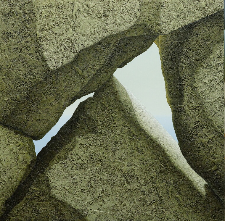 • 제주돌담의 작은 ‘트멍’을 표현했습니다. 트멍은 틈의 제주 방언입니다. 담이란건 나와 내 소유를 지키기 위한 단절의 수단이지만 제주돌담에서는 소통을 봅니다. 트멍 없이 쌓은 현대의 돌담은 태풍에 쉬이 무너지지만, 트멍 숭숭한 돌담은 어설퍼 보여도 인고의 시간 그 자리를 지킵니다. 소통은 저를 무너지지 않고 늘 그 자리에 서있는 작가이게 합니다. 트멍의 형태와 돌의 질감에는 현대미술의 추상적 아름다움이 숨어 있습니다. 보는 순간 그 형태와 모습이 즉각적으로 인지되는 사실적 그림보다 기호적이거나 도형적이거나 문자적이거나 한 비정형적인 추상적인 어떤 느낌에 심한 아름다움을 느낄때가 많습니다. 전 제 작품 ‘트멍’을 통해 사물의 본질이 내재한 추상적인 미(美)를 극사실적 기법으로 화폭에 구현하고 싶습니다.