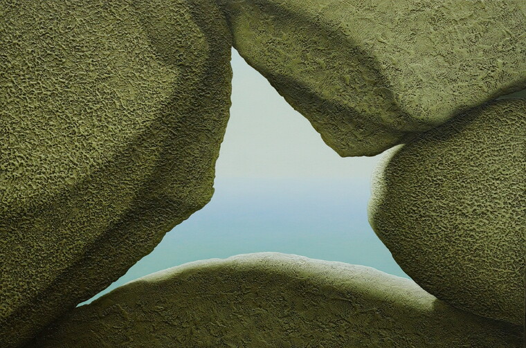 • 제주돌담의 작은 ‘트멍’을 표현했습니다. 트멍은 틈의 제주 방언입니다. 담이란건 나와 내 소유를 지키기 위한 단절의 수단이지만 제주돌담에서는 소통을 봅니다. 트멍 없이 쌓은 현대의 돌담은 태풍에 쉬이 무너지지만, 트멍 숭숭한 돌담은 어설퍼 보여도 인고의 시간 그 자리를 지킵니다. 소통은 저를 무너지지 않고 늘 그 자리에 서있는 작가이게 합니다. 트멍의 형태와 돌의 질감에는 현대미술의 추상적 아름다움이 숨어 있습니다. 보는 순간 그 형태와 모습이 즉각적으로 인지되는 사실적 그림보다 기호적이거나 도형적이거나 문자적이거나 한 비정형적인 추상적인 어떤 느낌에 심한 아름다움을 느낄때가 많습니다. 전 제 작품 ‘트멍’을 통해 사물의 본질이 내재한 추상적인 미(美)를 극사실적 기법으로 화폭에 구현하고 싶습니다.