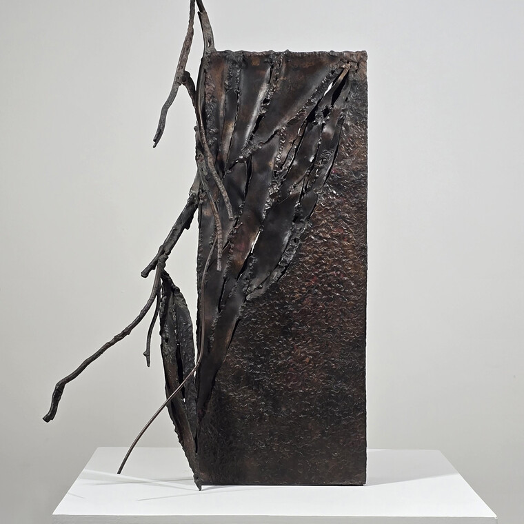 • [작가노트] 생명의 노래와 춤 나의 작업은 자연과 생명, 그리고 그 안에 흐르는 보이지 않는 기운에 대한 사유에서 출발한다. 금속이라는 물질은 본래 무겁고 단단하지만, 나는 그 물성 속에서 율동과 생명성을 끌어내고자 한다. 이는 자연이 지닌 끊임없는 움직임과 생명의 리듬을 형상으로 드러내기 위한 시도이다. 작품에는 우리 전통 문양과 건축, 공예, 벽화 등에 스며 있는 영적 기운이 바탕으로 깔려 있다. 나는 이를 춤에 비유한다. 춤은 형태이면서 동시에 흐름이며, 정지된 순간 속에서도 시간과 에너지를 품고 있다. 금속 조형 역시 그러한 움직임의 기억을 담아내는 매개체가 된다. 무리지어 수면 위를 날아오르는 새들의 모습은 일상의 감각을 깨우는 자연의 은유로 등장한다. 이는 단순한 자연 묘사가 아니라, 현대인의 감각 속에서 점차 희미해지는 생명의 떨림을 환기시키기 위한 장치이다. 작품 속 금속 조각들의 집합은 개별 존재이자 하나의 유기적 흐름을 이루며, 생명의 군무를 이루듯 공간 속에 펼쳐진다. 또한 이 작업은 현대사회에서 잃어가고 있는 원초적인 존재의 기억에 대한 질문이기도 하다. 자연의 생명력과 시간, 공간이 만나는 지점에서 우리는 무엇을 잃었고, 무엇을 되찾아야 하는가를 스스로 묻고자 한다. 사라져가는 자연과 생명의 존엄성은 작품 속에서 하나의 노래가 되어, 가식과 허위로 가득한 문명 속에서도 희망의 가능성을 조용히 들려준다. 한국 건축의 처마선은 나에게 중요한 조형적 모티프이다. 무거운 소재임에도 불구하고 하늘로 날아오르듯 자연과 어우러지는 그 선의 기운은, 생명이 지닌 근원적인 율동과 맞닿아 있다. 나는 금속을 통해 그 본질을 드러내고, 자연과 인간, 전통과 현대가 만나는 접점을 형상화하고자 한다. 이 작업들은 결국, 생명에 대한 경외와 자연과의 조화로운 공존을 향한 나의 지속적인 사유의 기록이다. 2026.2 김 준
