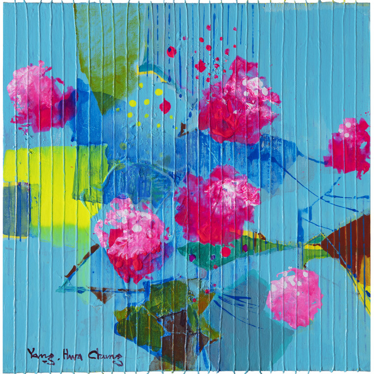• [작가노트] 자연의 생명은 빛으로 태어난다. 빛은 작은 씨앗을 움트게 하며 열매를 맺게 하는 생명의 근원이다. 생명의 빛은 결정체인 자연은 생명의 아름다운 언어이다. 이전의 작업들이 이러한 삶의 탄생과 기쁨에 대한 노래였다면 이제는 생명의 빛의 발자취를 따라 가며 소통해 보려 한다. 평면의 캔버스에 실을 붙이고 모델링 컴파운드를 덮어가는 행위는 땅에 씨앗을 심는 행위와 비슷하다. 나만의 이야기, 씨앗을 움트게 하기 위한 경건한 밑 작업이라고 할 수 있다. 숨어 있던 빛 – 실들은 때로는 무심하게 덮어지기도 하며 때로는 그 실루엣을 드러내며 화면에 다양한 이야기와 깊이를 만들어 간다. 자연에서 보여지는 이미지들이 경쾌하게 때로는 묵직한 울림이 되어 화면에 나타난다. [평론] 양화정, 그의 빛은 사랑이며 하늘의 은총 성장한다는 것의 비극 중 하나는 우리가 사물에 익숙해진다는것이다. 성장할수록 어릴 때 가졌던 순수함이 사라져가는 것은 안타까운 일이다. 작열하는 태양의 뜨거움, 달의 은은함, 비의 촉촉함, 하늘의 푸르름, 기묘한 구름의 형상, 바람의 선선함, 셀 수 없는 파도의 부딪힘, 무수한 꽃들의 피어남 등에 익숙해져 자연의 오묘함에 무감각해졌다면 그것만치 불행한 일도 없을 것이다. 어떤 측면에서 예술가는 우리 눈에 익숙해진 것들을 원래대로 돌이켜 놓는 주인공들이다. 우리로 하여금 짧은 시간이나마 순수하고 꿈꾸는 눈을 가진 어린 아이가 되게 만든다. 양화정은 스쳐지나가는 것들에 눈길을 돌린다. 그가 멈추는 대상은 자연의 사태들로, 이미 우리의 눈에 익숙해져 무감각하게 받아들이는 존재들이다. 그러나 그는 눈과 귀를 열어 나무와 꽃을 응시한다. 그들이 무엇인지 캐묻지 않더라도 함께 거기에 있는 자체만으로 기뻐한다. 존재의 신비를 즐거워한다. 당연한 것을 당연한 것으로 여기지 않고, 평범한 것을 평범하게 여기지 않는다. ‘자잘한 이야기’에 주의를 기울임으로서 거기서 소중한 생명의 가치를 발견한다. 그의 그림을 보면 식물 이미지, 곧 꽃, 풀잎, 줄기, 나무가 등장한다. 이런 이미지들은 화면에 ‘붙박이’로 등장한다. 눈에 익은 이미지들을 다루는 것은 여간 어려운 일이 아니다. 잘해봐야 본전이고 잘못하면 무슨 소리를 들을지 알 수 없다. 관건이 되는 것은 우리에게 익숙한 이미지들을 어떻게 소화해내느냐 하는 문제이다. 그는 분홍, 초록, 황토색 등 선명하고 채도 높은 색들을 사용하여 생명의 소망이 깃들어 있는 순수하고 싱그러운 감정을 실어낸다. 이미지에 기쁨과 즐거움의 감정이 얹혀지면서 화면은 활기를 띄게 된다. 단순한 이미지가 아니다. 그의 화면에 이미지는 화사하고 영롱하게 등장한다. 그의 그림에서 모든 도상들은 행복에 겨워하는 것 같다. 밝고 화사한 분위기의 색상과 함박웃음을 짓는 꽃들을 보면 그늘진 구석이라곤 찾아볼 수가 없다. 유쾌한 환희의 색상, 그리고 고조된 마음이 함께 곁들어져 축제의 분위기를 연출한다. 근래에 작가는 빛을 형용하기 위해 동그란 투명, 반투명 플라스틱, 혹은 반짝이는 크리스털 플라스틱을 부착하는 등 작품에 약간의 변화를 꾀하고 있다. 일정한 간격으로 부착된 동그란 플라스틱들은 광선을 반사시키며 비가시적 존재를 은연중 암시한다. 빛의 등장으로 그는 한층 궁극적 실재를 향한 갈망을 나타낸다. 빛이 없다면 자연물들은 존재하지 않는다. 빛은 식물의 성장을 도와주고 생명을 주며 열매를 맺게 한다. 식물이 푸르고 숨쉬는 것은 모두 빛의 도움이 있기 때문이다. 이렇듯 고마운 빛을 작가는 빼놓을 리 없다. 그림에서 그가 말하는 것도 빛의 존재와 관련이 있다. 식물에게 성장을 가져다주듯 신령한 광채는 우리 영혼을 만족시키고 풍족케 한다. 갇힌 자를 자유케 하며 마음이 상한 자를 위로하며 상처난 자를 치유하는 초월적인 빛이다. 그러한 빛은 사랑이며 하늘의 은총이다. 어둠을 물리치며 움츠림과 매여 있는 데서 풀려나오게 하기 때문이다. 그 빛으로 가까이 갈수록 행복하며 멀어질수록 불행해진다. 식물을 키우듯이 인간 영혼에 생명의 양식이 된다. 처음 품은 마음을 끝까지 간직하는 것은 쉽지 않은 일이다. 대개는 출발할 때의 순수성을 잘 지키다가 얼마 지나지 않아 흐지부지해진다. 그리고 또 몇 년이 지나면 처음의 순수성을 품었는 지조차 까마득히 잃어버리는 상태가 된다. 그러나 그러한 망각과 변질에도 끄떡하지 않는 것이 있다. 바로 자연의 질서다. 그것들은 우리에게 순수함이 무엇인지 가리켜준다. 각별한 주의를 갖는 사람에게는 태초의 순수성까지 알려준다. 자연에 마음이 끌리는 것은 사실 우리가 갖지 않은 ‘지속성’과 ‘의연함’을 가졌기 때문이다. 사람을 품어주고 자신의 순수성을 지켜오는 자연의 본성에서 우리는 천지를 창조하셨을 뿐만 아니라 보존하시는 하나님이 세상을 품는 법을 배운다. 사람이 의식하든 의식치 못하든 자연은 늘 우리 곁에서 미소를 보낸다. 꽃은 어떤가? 그것은 우리에게 향기를 주고 아름다움을 주며 사랑하는 마음을 갖게 한다. 이렇듯 하나님의 너그러움과 평안을 꽃에서 찾는다면 지나친 발상일까? 그가